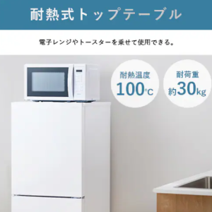 耐熱トップテーブルで電子レンジを置けるため、狭いキッチンでも使いやすいです。