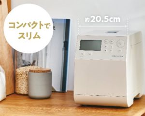 ホームベーカリーはサイズが大きく場所を取るものが多いですが、このモデルは幅約20cmとスリムなのでキッチンに置きやすいのが特徴です。